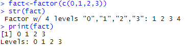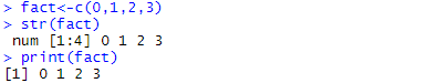 fact<-c(0,1,2,3) str(fact) print(fact) |