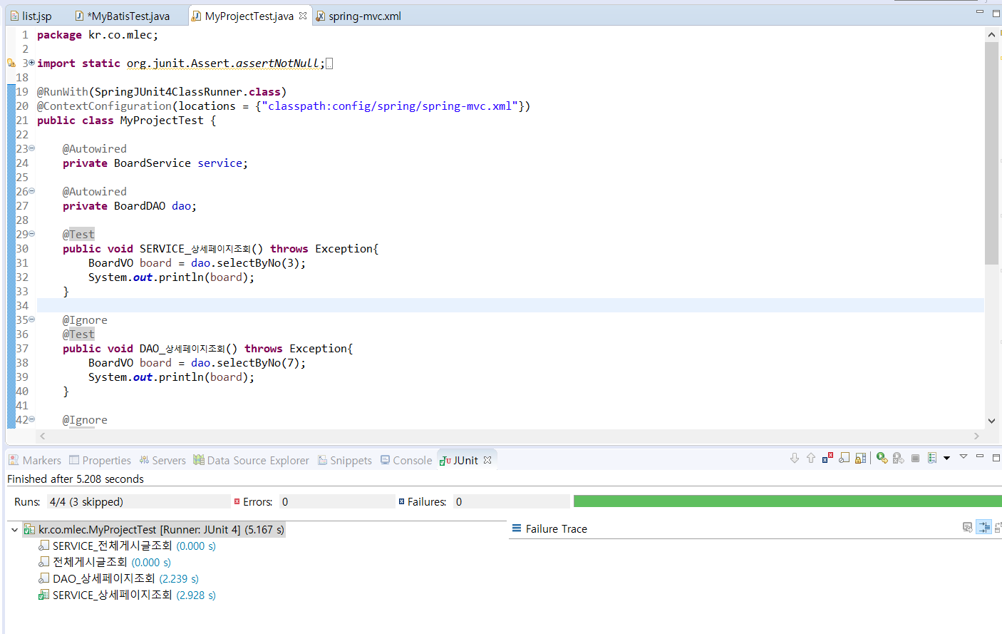 : myBatis 를 통한 Junit 테스트 예시