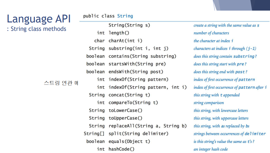 - String 객체 내의 문자 인덱싱은 배열과 같이 0부터 시작됨
