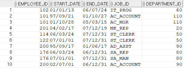 1. 과거에 근무한 적이 있다 -> JOB_HISTORY 테이블과 EMPLOYEES테이블 조인